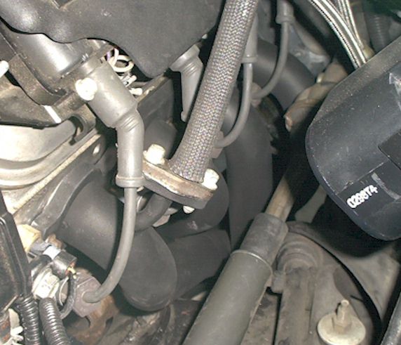 pipe which has a 10mm bolt attaching it to a mating trans. metal tab to minimize pipe travel